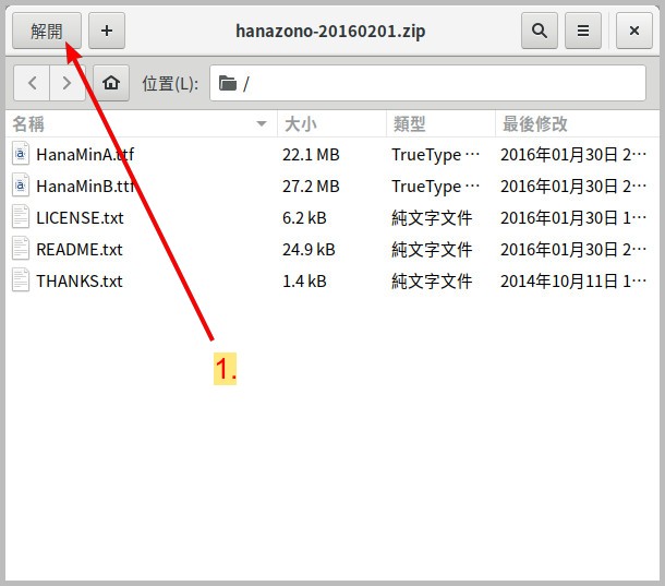 當字體下載完了以後,就要開始將上一步所下載的字體解壓縮。