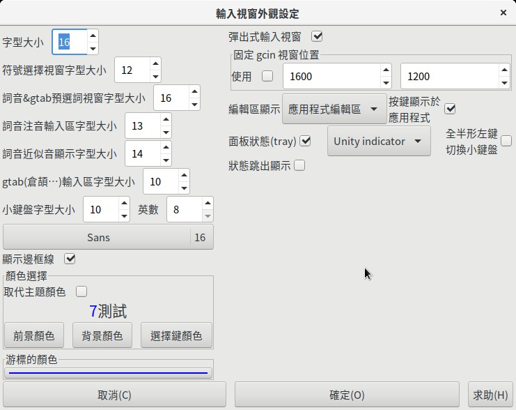 外觀設定 中文輸入時 選字視窗 的字體大小等設定,如 圖 110 ,