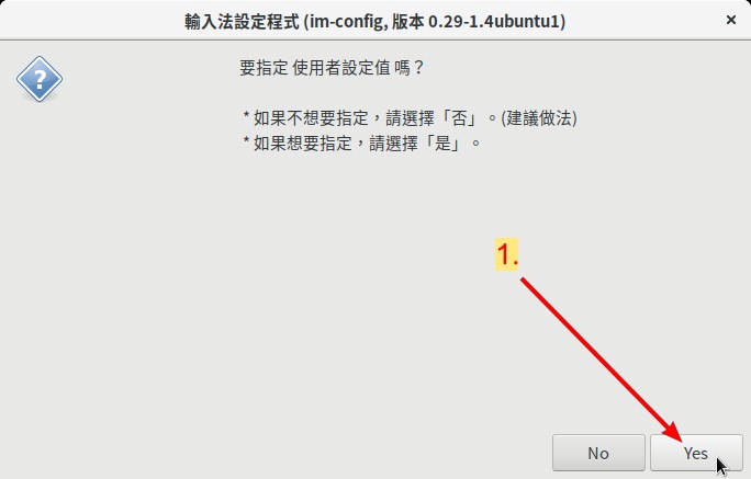 接下來,就會看到視窗中出現: 要指定使用者設定值嗎?, 這時點擊 Yes ,如 圖 103 所示;