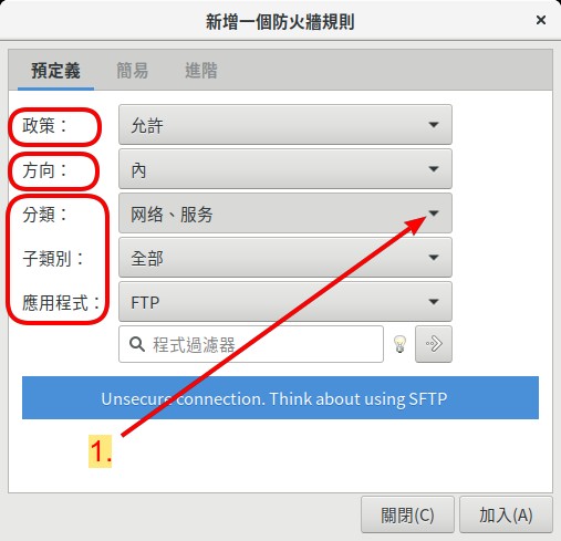 圖 #fig4-01-fireruleadd2中間還有另外兩項,它們設定的步驟是:- 子類別 的預設值為 全部 ,保持預選不變。